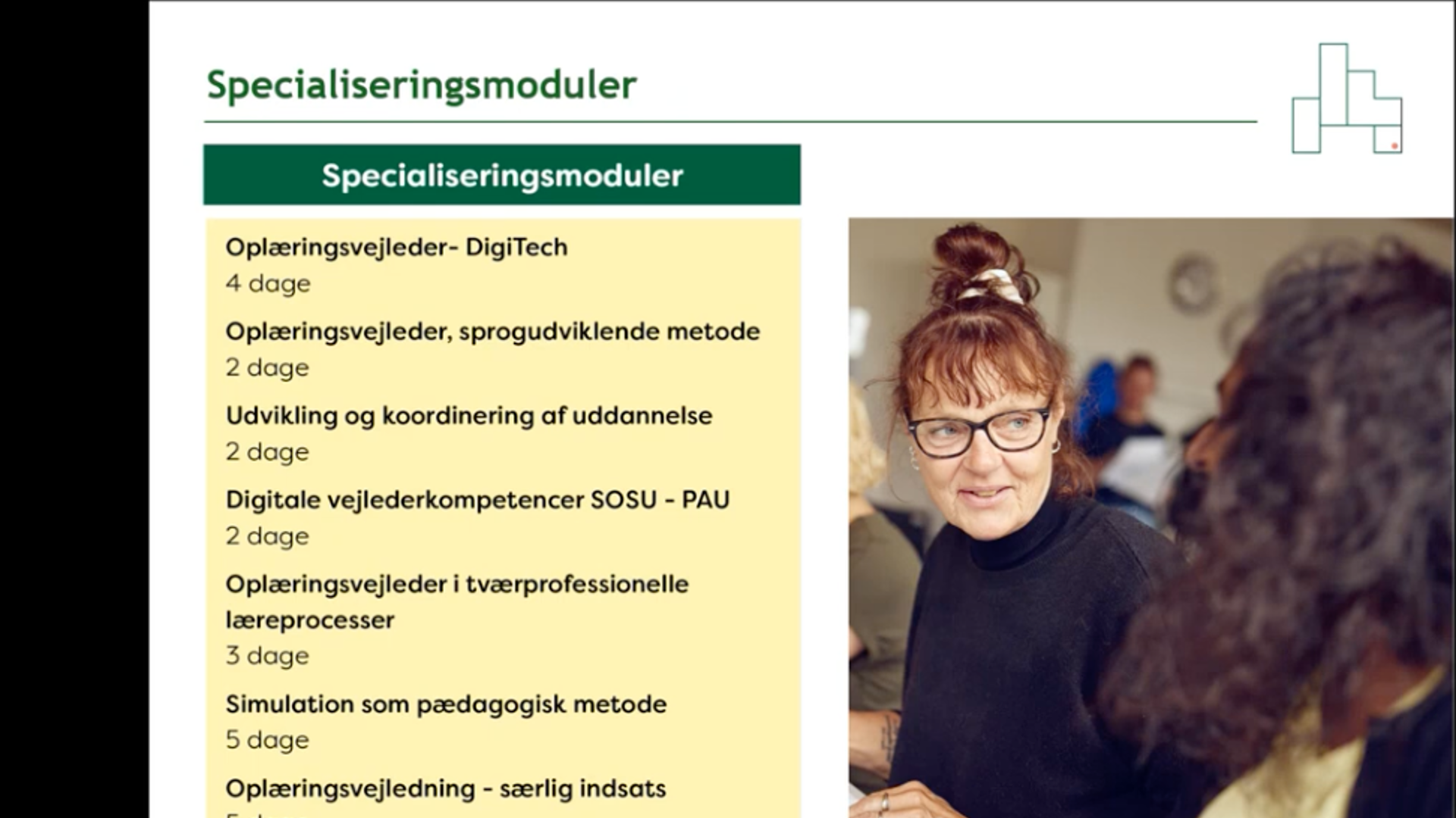 I 2025 blev der udviklet nye basisuddannelser og specialiseringsmoduler for oplæringsvejledere, samt lavet revideringer af flere af de eksisterende.
